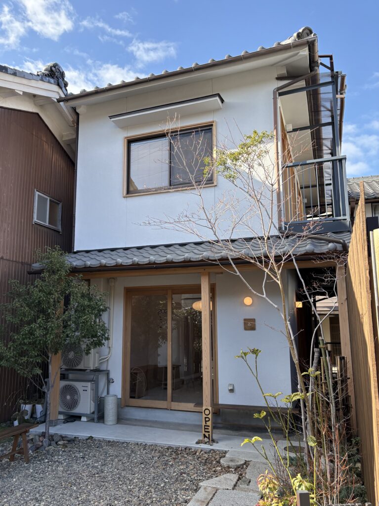 室内と野外が同じ高さに設計されたカフェ。